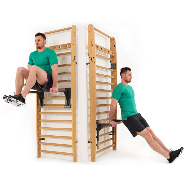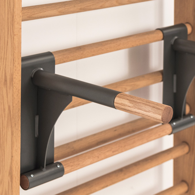 NOHRD MultiAdapter utökar dina träningsmöjligheterna på NOHRD WallBars och är därför en populär uppgradering för hemmaträning. Häng bara MultiAdaptern på önskad höjd beroende av vilken muskel du vill träna och sedan är du klar. MultiAdaptern kan monteras så att du antingen får två parallella handtag för att utföra dips och olika magövningar eller som en robust pull-up-stång. Förutom dips och pull-ups kan MultiAdaptern också enkelt användas för andra övningar. Vrid helt enkelt MultiAdaptern i 90 ° så kan den enkelt och snabbt användas för push-up-övningar.
