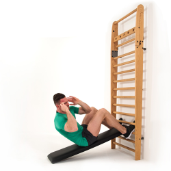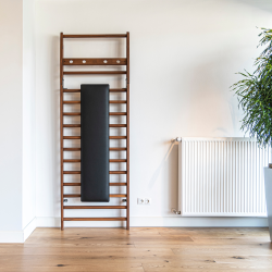 Lutningsbänken för NOHRD WallBars fungerar både som träningsbänk och ryggstöd och erbjuder extra träningsfunktioner för NOHRD WallBars. Lutningsbänken fästs enkelt och säkert på en ribba (maxhöjd 95 cm) och ger därmed olika träningsvinklar. Efter träning kan bänken förvaras hängande på en ribba för platsbesparing.
