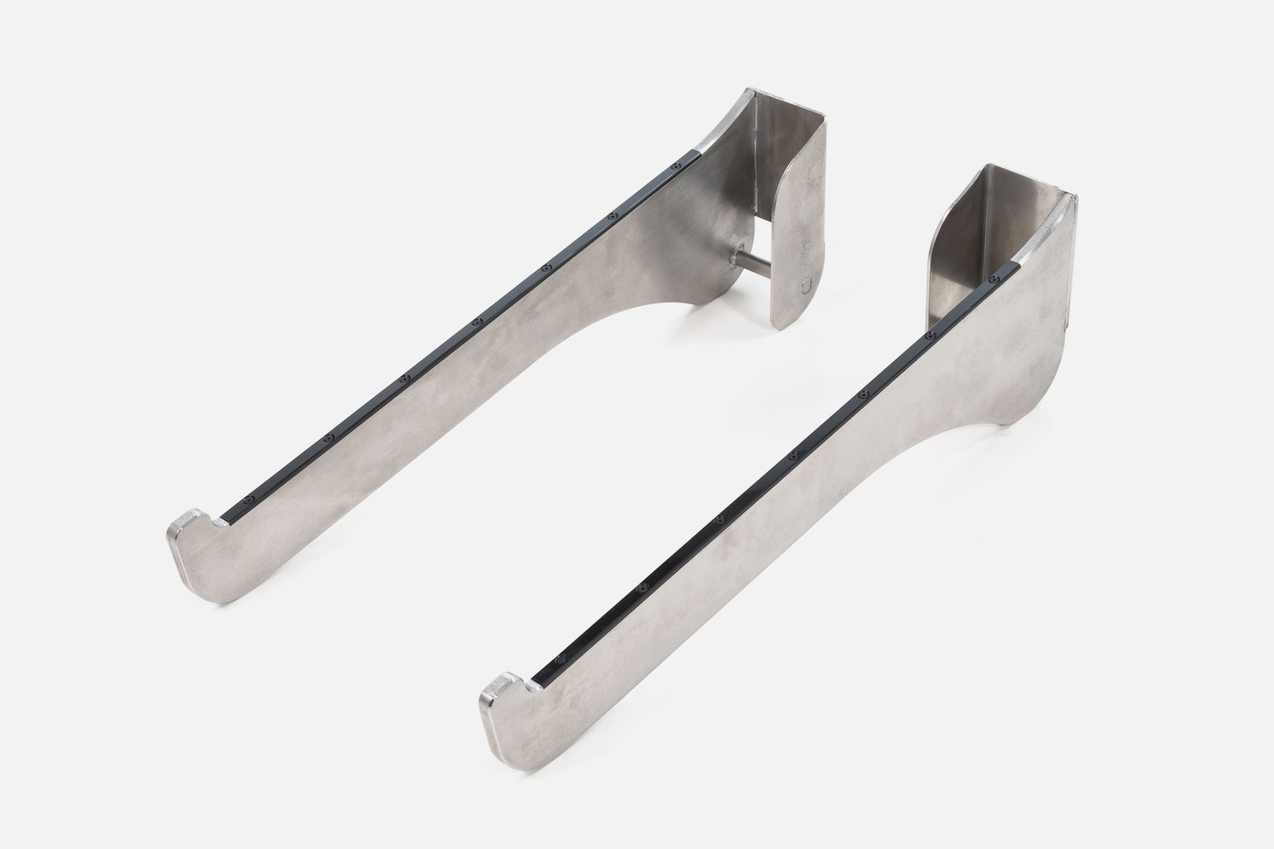 The Spotter Arms are individually set to the SquatRack , providing a reliable safety net for your workouts. Enginieered with robust stainless steel for maximum stability, these arm fixtures are not only sturdy but also equipped with a black plastic rail for minimum noise during your training session, preserving the integrity of your equipment.