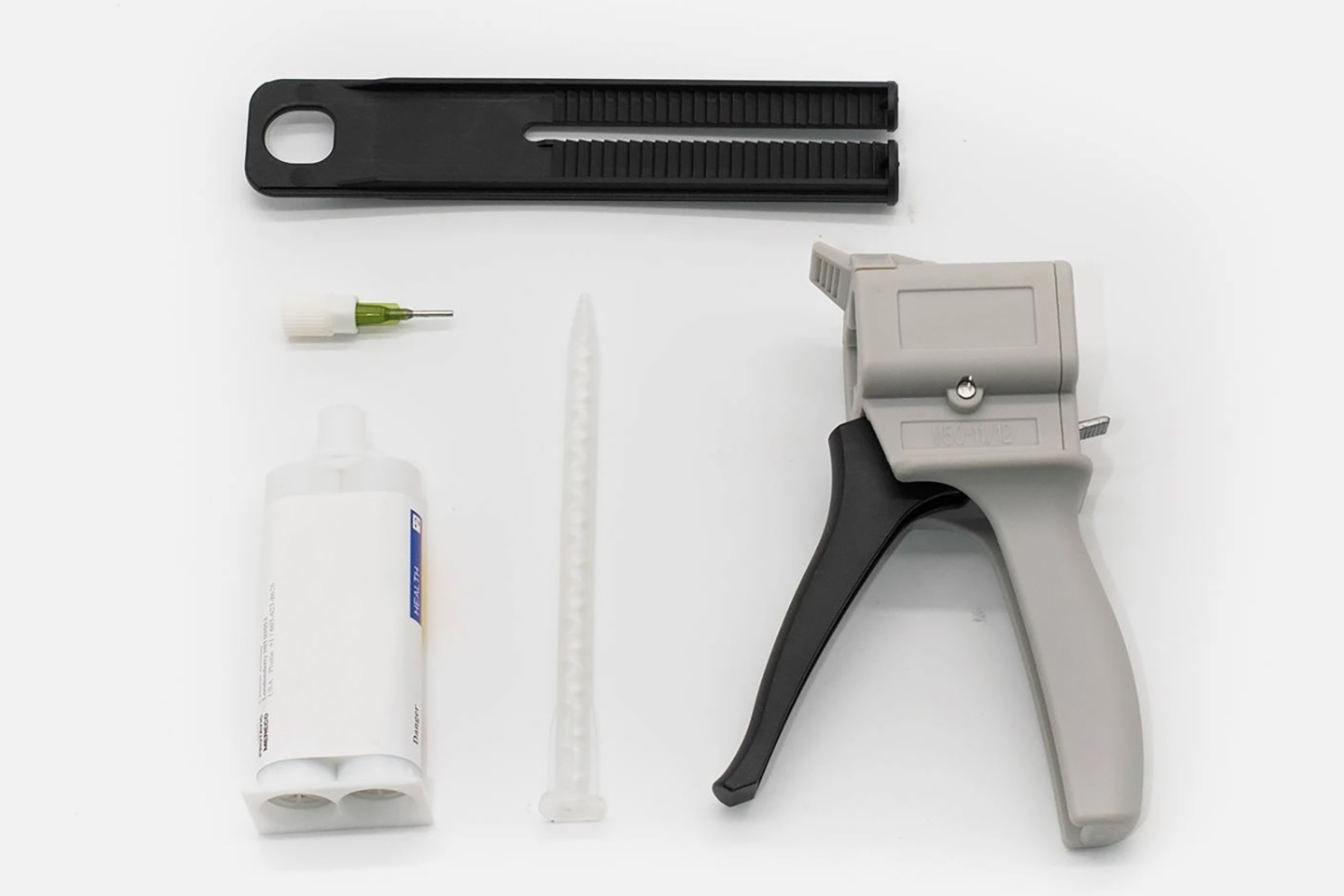 Består av: Spruta, blandarmunstycke, adapter, pistol